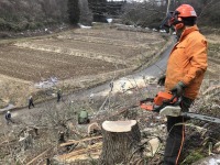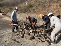 大勢が参加し、伐採や玉切りなどを行いました。