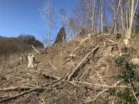 現場となる山林は、田んぼの隣の小高い丘の田んぼに面した斜面。