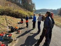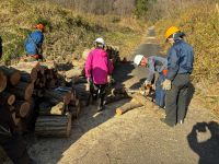 道に接した立木はあらかた伐ってしまって、道から20~30mくらい離れた箇所での伐採作業となった。