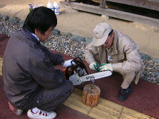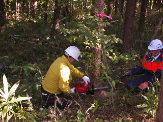 | 2003/10/18〜10/19 薪焚き人養成講座 第2講 「チェーンソーの安全な使い方」 ところ:平田村 蓬田山麓「蓬田森林公園」「樹里庵(古民家)」 |