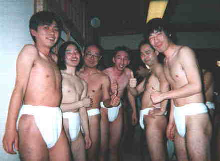 | 行って来ました、裸詣り。 林業関係者は、加藤・成田・小檜山・大三・大松・米川そして渡部。 私と小檜山は、今回初挑戦である。ちょっと、ドキドキ。 我々は、夕方、柳津町民センターに集合した。今年は正月の大雪で、柳津も雪がいっぱい積もっていた。 温泉に入って、身を清め、裸詣りの参加者の控え所へ、中学生くらいの男の子から76歳のじいちゃんまで、いろいろな人がいる。参加者名簿を見ると、千葉県とかからも来ている。この控え所だけでも総勢50人くらいであろうか。 めいめい、酒を飲む。体を温めなくちゃね。 ふんどし姿で記念写真やがて、みんな、服を脱ぎだし、ふんどし姿に着替え始まると、異様な興奮状態になってきた。記念写真を撮る人、叫ぶ人、裸の体をたたき合う人等々。どこか、安寿会の酒飲みに似てるなーと思う。 俺も服を脱ぎ、ふんどしを締める。といっても、自分ではできないので、おじさんに締めてもらう。 ふんどしを締めると、妙な清々しさがあった。小檜山くんは「やべー、やみつきになるかもしれない」と口走っていた。 階段をかけあがる小檜山くんと成田くんそして、いよいよ午後8時半。出発の時である。 一同、鬨の声をあげる。清めの塩をふって、町民センターを飛び出す。 裸足に雪道が冷たくて痛い。滑りそうになりながらも、「わっしょい、わっしょい」とかけ声をかけながら走っていく。 うーん、消雪道路の地下水はなんて温かいんだ。 途中、自宅や旅館からでてくる人たちと合流しながら、一気に七日堂へ。 本堂へ入ると、100人くらいの裸の男たちと参拝客・報道陣がごった返して、すごい熱気である。 裸の男たちは皆、打ち綱を目指し押し合いへし合いしている。油断すると潰されそうである。 すいすい登る人、やっと登る人、登れなくて途中で落ちる人、ひきずり落とされる人、様々な人がいる。しかし、打ち綱は一本なので否が応でもみんなの注目を浴びることになる。 大三くんは少年が登るのを助けながら登っていた。 いかん、ここでひるんでいては・・。 俺も人波の中、少しづつ打ち綱へ近づいていく。賽銭箱の上に登り、いよいよ、と思ったら、押されて、賽銭箱から落ちてしまった。 再度、賽銭箱の上に上がって、機会を伺う。一人、綱の半分くらいまで登ったので、よし今だ、と綱に飛びつく。一気に前の人の足のところまで登る。よし、このまま行くぞ。 ところがである。前の人はそこから一向に上にいかないのである。俺の手で足がかりを作ってやって助ける。しかし、遅々として、進まない。次の人が登ってきた。俺の腹の辺りの綱を掴んでいる。 時間ばかりが過ぎていった。俺の下の人はとうとうこらえきれなくなって、ずるずるずると落ちていった。俺も同時にひきずり落とされる。下の人は綱から落ちて、かろうじて残った俺は、再度登ろうとした。 しかし、今度は上の人が落ちてきた。ああ、駄目だ。観念して、俺も綱から落ちた。 下から見てると、誰もいない綱を成田くんがするするすると、あっという間に登っていった。 こうして、俺の裸詣りは終わった。 結局、登ったのは、小檜山・成田・大三・大松であった。 その夜、皆の健闘をたたえ、酒宴がえんえんと繰り広げられるのであった。 |